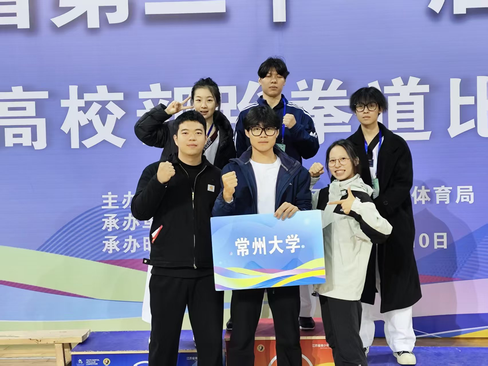 2025年11月10日,在刚刚落幕的江苏省第二十一届运动会高校部跆拳道比赛中,常州大学代表队发挥出色,经过五天的激烈角逐,最终荣获甲B组男子54kg级第三名、男子63kg级第五名、女子55kg级第九名的优异成绩,展现了常大学子顽强拼搏、追求卓越的精神风貌。 本次比赛由江苏省教育厅、省体育局联合主办,江苏师范大学承办,吸引了全省多所高校的顶尖选手参与。常州大学跆拳道队自接到比赛通知以来,积极组队备战,历经层层选拔,最终派出3名运动员参赛。比赛中,队员们沉着应战、发挥稳定,以扎实的技术和出色的战术执行力赢得现场裁判与观众的一致认可。
