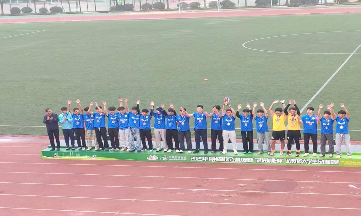 为落实《常州市足球高质量发展三年行动计划(2025—2027年)》,10月25日科教城举办了常州市高校足球联赛暨“武进体彩杯”科教城大学生足球联赛。我校积极备战参赛,经历5轮赛事激烈角逐,常州大学男子足球队经过奋勇拼搏,最终荣获季军。常州市政协副主席,科教城管委会主任祝正庆为球队亲自颁奖。 整项赛事充分展现了常州大学学子团结拼搏、永不言败的体育精神。未来球队将继续传承常大体育优良传统,刻苦训练,在更多赛事展现常州大学的体育风采。