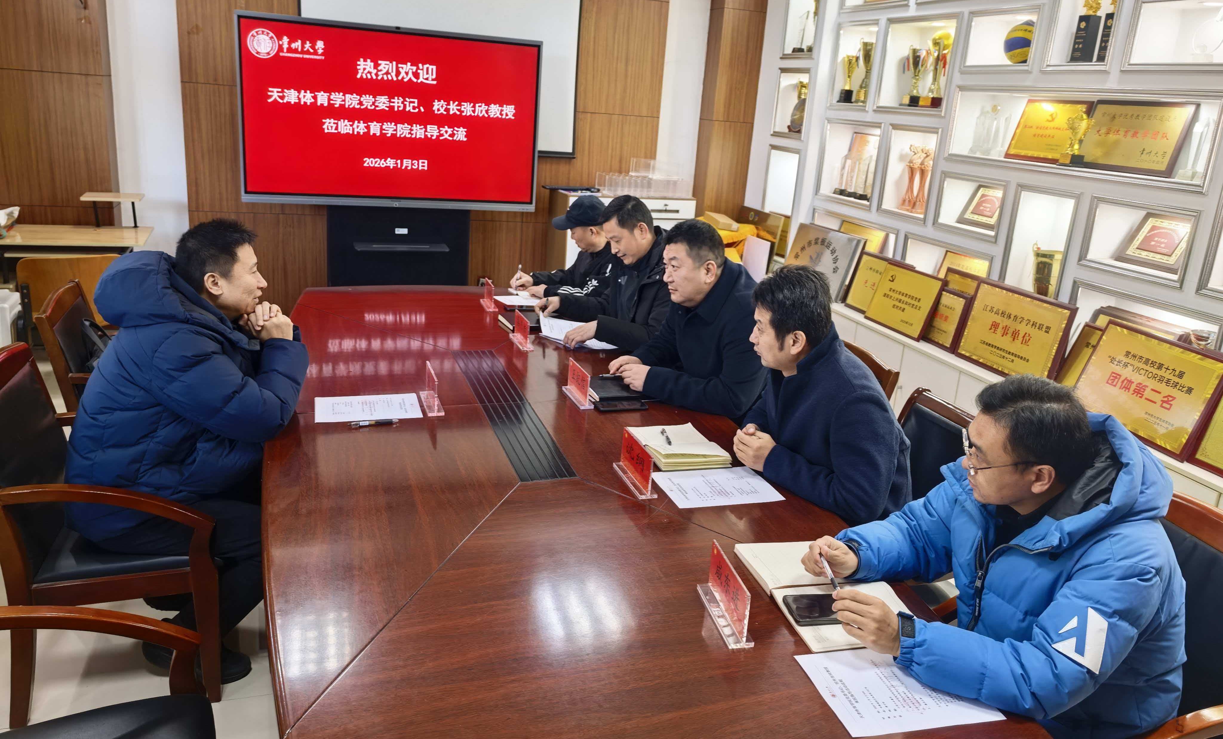 1月3日,常州大学体育学院特邀天津体育学院党委书记、院长张欣教授来院指导,就学科与专业建设及党建工作进行深入交流。体育学院领导王纪信、沈纲、桑月标、咸东进及运动训练专业负责人何秋鸿参加交流活动,活动由体育学院党委副书记桑月标主持。