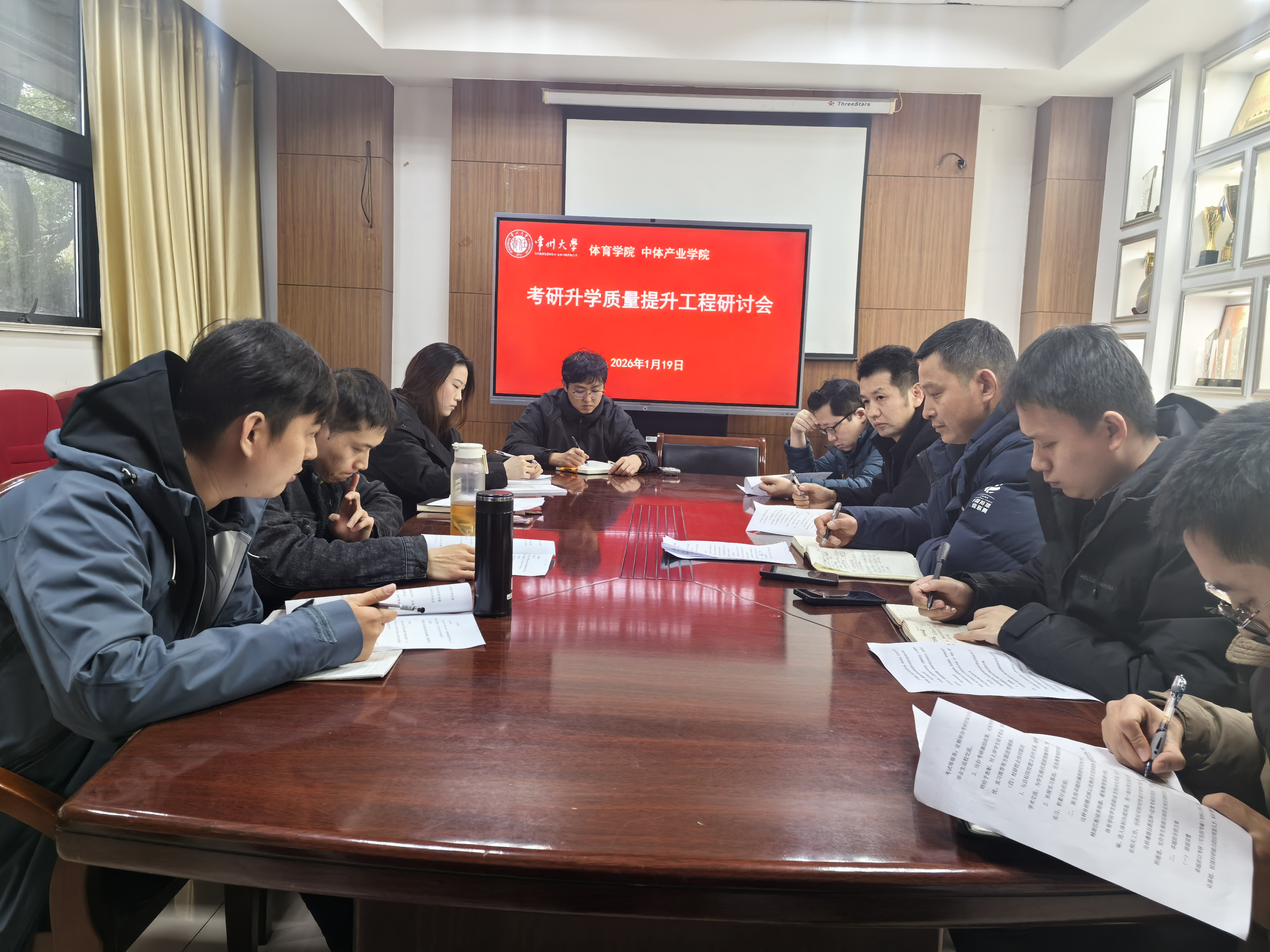 1月19日下午,学院在科教城校区东区体育馆152会议室召开考研升学质量提升工程研讨会,院长沈纲、院党委副书记桑月标出席会议,全体辅导员、班主任参加会议。会议由桑月标主持。 会议讨论了《常州大学体育学院卓越班实施方案(讨论稿)》,与会人员围绕如何做好考研工作、提升学生考研质量建言献策、充分讨论。 沈纲发表讲话。他强调,考研工作是人才培养的重要部分,是本科生高质量就业的重要内容。当前全国高等教育形势和全国考研态势不断发展变化,涌现出一些新特点、新举措,从人才培养的工作要求出发,学院应顺势而为,积极调整和变革人才培养理念和办学模式,强化成果导向,不断提升学院本科生考研升学率和升学质量,并以此为牵引推动课程设置、办学资源投入等各方面调整重组,为学校和学院高水平发展贡献力量,为中国式现代化建设培养更多优质人才。