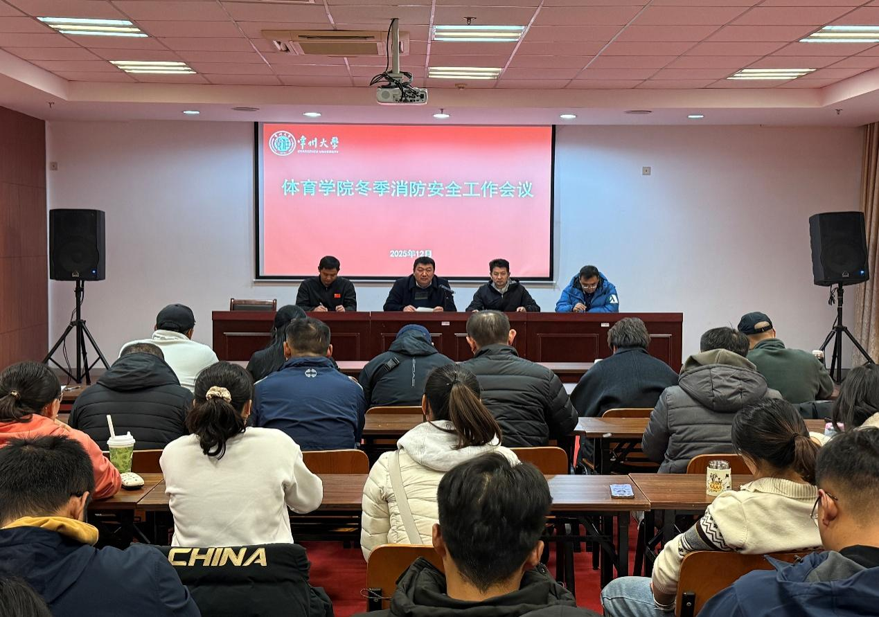 2025年12月10日下午3时,常州大学体育学院召开冬季消防安全专项工作会议。学院党委书记王纪信同志主持会议,带领全体教师进行了深入学习研讨,会议对下一阶段的消防安全工作进行全面部署。