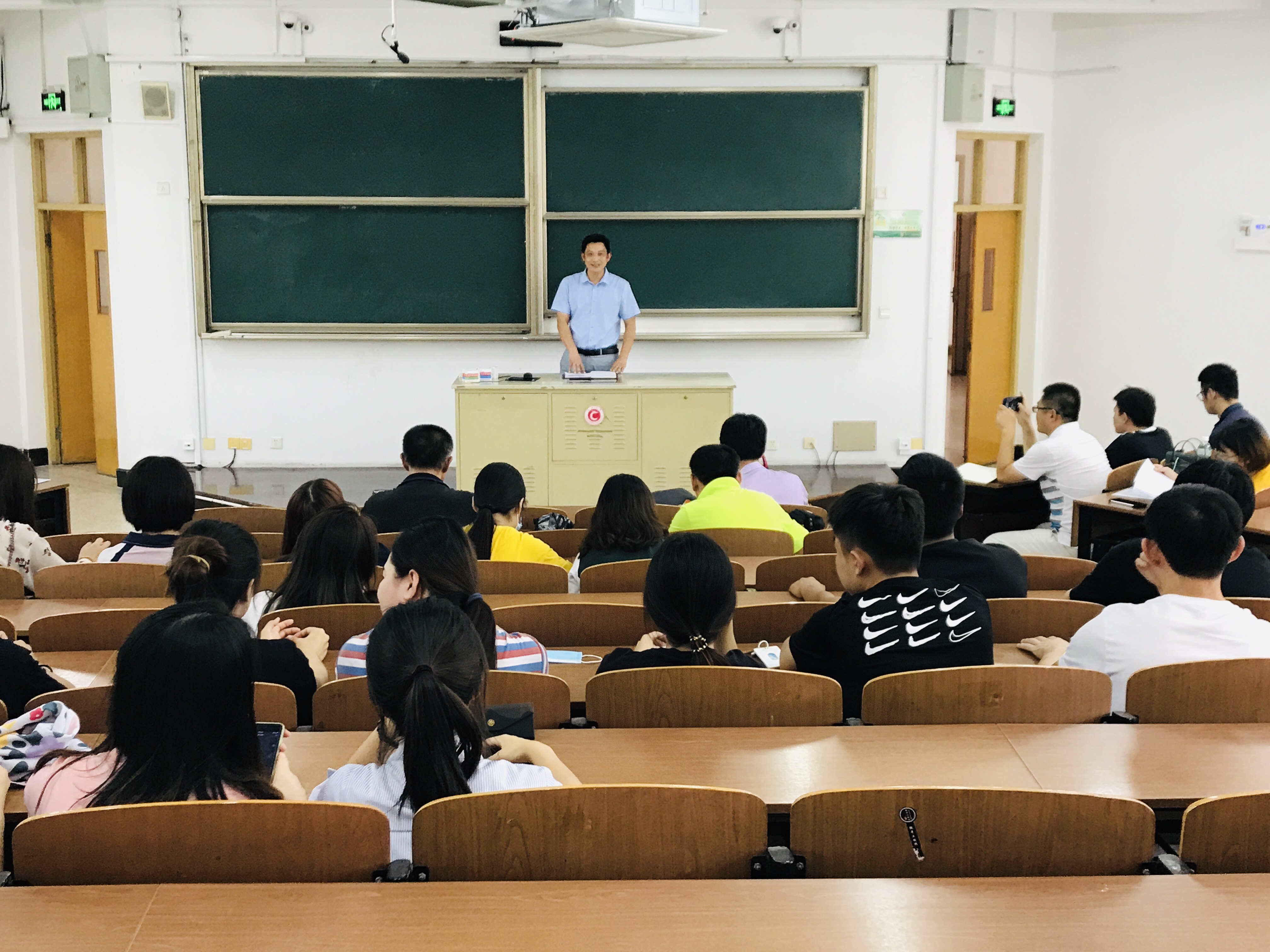 沈刚介绍本次实习相关事项。希望同学们能通过实习,进一步熟悉理论知识、专业技能和教学方式,及时转变角色,力争使实践教学活动收益的最大化。