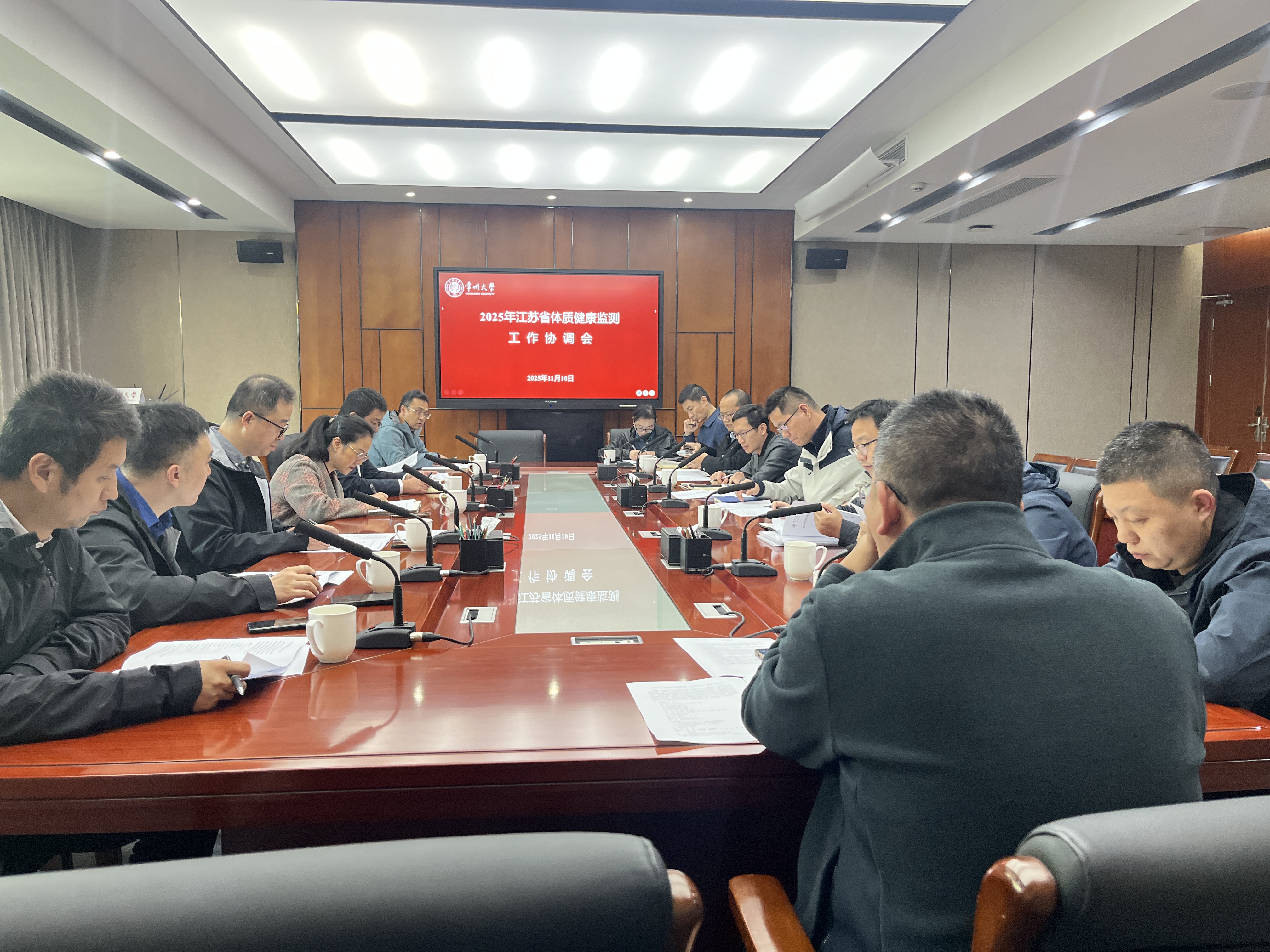 为了深入贯彻江苏省教育厅办公室《2025年江苏省属高校〈国家学生体质健康标准〉监测工作方案》文件精神,确保监测工作的顺利进行,我校于11月10日下午两点在文正楼第二会议室召开了江苏省“学生体质健康标准”监测工作协调会。校党委常委、副校长杨琳,校党委常委、副校长周刚,学生处、后管处、保卫处等相关负责人、被抽测学生所在学院副书记、体育学院相关负责人出席会议。