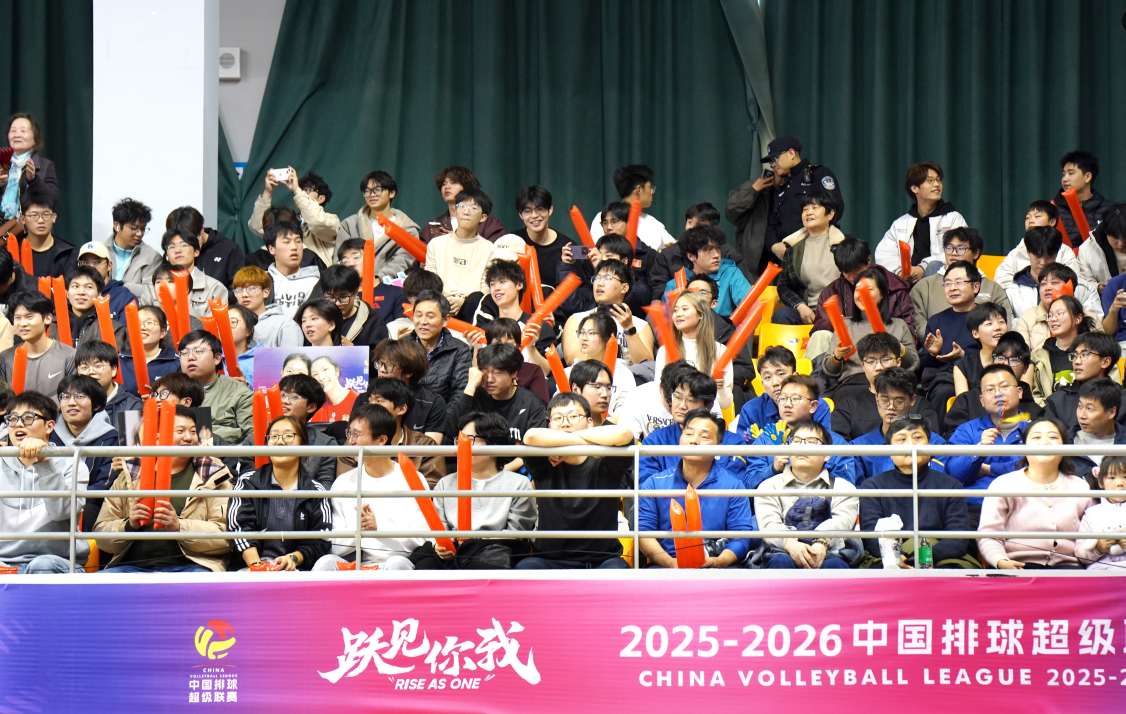 比赛异常精彩,观赛的全体师生也精神饱满、热情高涨,挥舞着手中的旗帜,齐声为江苏女排加油鼓劲,现场氛围热烈浓厚。此次活动中,30余名学生志愿者以饱满的热情、严谨的态度投身赛事服务,在各个岗位上履职尽责,用实际行动诠释了青年学子的责任与担当,为赛事顺利开展提供了有力支撑。