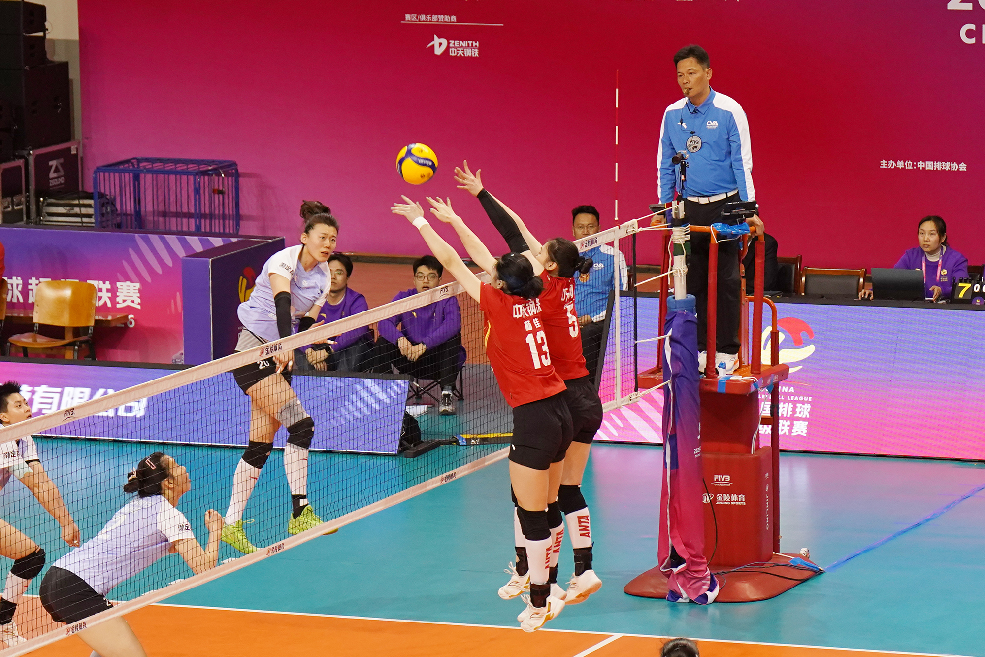 作为卫冕冠军,江苏中天钢铁女排在两队半决赛第一回合的较量中客场告负,若想进入决赛则必须在本场比赛中取胜,并通过金局制胜来谋求局势“逆转”。本场比赛中,双方争夺相当激烈,江苏中天钢铁女排队员们以精湛的球技、默契的配合和永不言弃的拼搏精神,直落三局以3比0获得第二回合比赛胜利,如愿将比赛拖入15分制的“金局”。金局更加精彩且一波三折。江苏中天钢铁女排一度取得7比1、14比9的阶段性优势,但天津渤海银行女排不但挽救了5个赛点,还在激烈的决胜分争夺中取得了16比15的反超。最终江苏中天钢铁女排连扳3分获得金局的胜利。